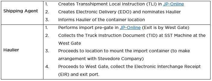 To deliver the shut-out cargo out of the port, the Shipper is to approach the vessel agent to create a shut-out record in JP-Online.
